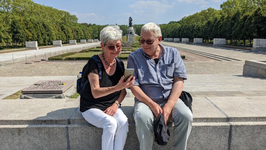 Paar beim lialo-Spaziergang durch den Treptower Park ©lialo